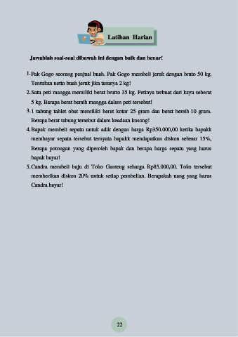 1. Pak Gogo seorang penjual buah. Pak Gogo membeli jeruk dengan bruto 50 kg.