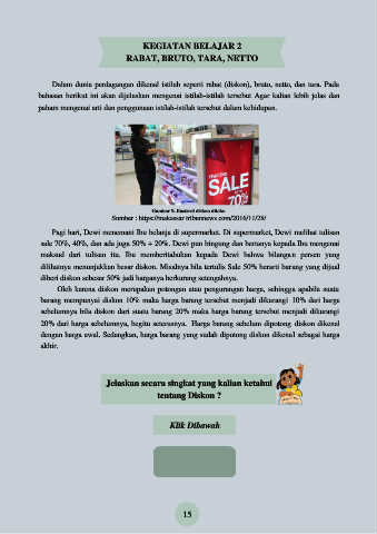 sale 70%, 40%, dan ada juga 50% + 20%. Dewi pun bingung dan bertanya kepada Ibu mengenai