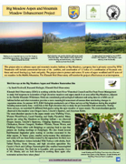 Big Meadow Aspen and Mountain Meadow Enhancement Project Waking up to a beautiful sunrise over Mt. Shasta to start bird surveys at dawn. (Big Meadows sunrise Mt. Shasta (c) Sarah Rockwell) High elevation wet meadow habitat with aspen stands around the edges. These habitats will be restored via conifer thinning and cattle fencing. (Big Meadows habitat (c) Sarah Rockwell) An aspen stand surrounded by wet meadow habitat at Big Meadows. (Big Meadows aspen stand (c) Sarah Rockwell) This project aims to enhance aspen and mountain meadow habitats at Big Meadows, a property that is privately owned by EFM. Treatments will include commercial harvests of the conifers, and construction of 1.2 miles of a combination of livestock wire fence and wood fencing (e.g. buck and pole). The project aims to protect and restore 22 acres of aspen woodland and 55 acres of wet meadow in the Marble Mountains. The Klamath Bird Observatory will monitor for project effectiveness on avian response. Bird Surveys at the Big Meadows Aspen and Meadow Restoration Site – by Sarah Rockwell, Research Biologist, Klamath Bird Observatory Klamath Bird Observatory (KBO) is working with the Scott River Watershed Council and EcoTrust Forest Management to study bird response to restoration of high elevation meadows and aspen stands in an area called Big Meadows, adjacent to the Marble Mountain Wilderness. Birds are considered good ecological indicators and using data on wildlife use of habitats before and after restoration provides a more meaningful assessment of success than monitoring changes in vegetation alone. In summer 2019, KBO biologists conducted a set of three surveys at Big Meadows during the songbird breeding season (early June – mid-July at this high elevation site) to study the pre-restoration bird community. During these surveys, we recorded 38 different bird species using the open meadow or aspen stands. The most abundant species observed in the meadow were Oregon Junco, Lincoln’s Sparrow, and American Robin. The most abundant species in the aspen stands were Warbling Vireo, Western Wood-Pewee, Lazuli Bunting, and Dusky Flycatcher. Many species are using Big Meadows as breeding habitat – we observed Oregon Juncos, Lincoln’s Sparrows, Chipping Sparrows, Mountain Chickadees, Brown Creepers, Northern Flickers, House Wrens, and Warbling Vireos either with fledglings or carrying food (a sign that parents are feeding nestlings or fledglings). We also found several Red-breasted Sapsucker pairs nesting in cavities excavated in the older aspens. In future years, smaller cavity-nesters like chickadees and wrens will use these holes created by the sapsuckers for their own nests. Big Meadows visitors included Wild Turkeys with chicks, Red- Tailed Hawks, Sooty Grouse, and high elevation specialists like Cassin’s Finch and Calliope Hummingbird (the smallest hummingbird in North America). The field site is beautiful, with spectacular views of Mt. Shasta, and we look forward to working there again after restoration actions have taken place! Lazuli Bunting and Warbling Vireo were two of the most common bird species at Big Meadows. (Lazuli Bunting and Warbling Vireo (c) Frank Lospalluto) www.ScottRiverWatershedCouncil.com 18