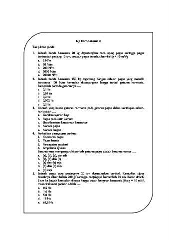 5. Sebuah benda bermassa 2 gram digetarkan menurut persamaan = 0,05 sin300