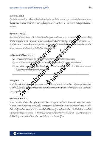 มาตรฐานการรับรอง JCI สำหรับโรงพยาบาล ฉบับที่ 7 85