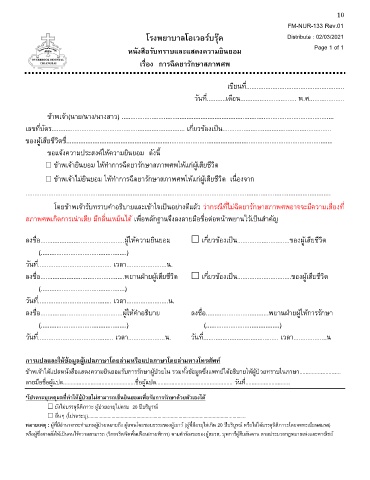หมายเหตุ : ผู้ทีมีอ านาจกระท าแทนผู้ปวยหมายถึง ผู้แทนโดยชอบธรรมของผู้เยาว์ (ผู้ทีมีอายุไม่เกิน 20 ปบริบูรณ หรือไม่ได้บรรลุนติภาวะโดยจดทะเบียนสมรส)