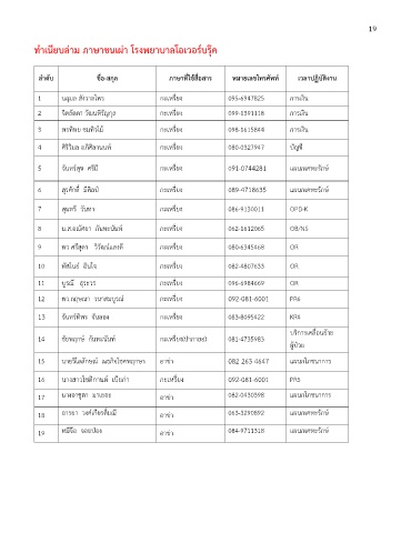 ล ำดับ ชื่อ-สกุล ภำษำที่ใช้สื่อสำร หมำยเลขโทรศัพท์ เวลำปฏิบัติงำน