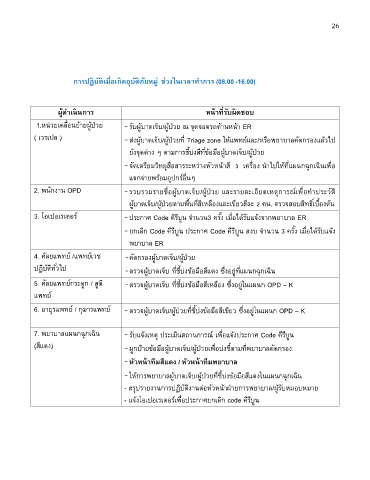 26 ฏ ภ ใ (08.00 -16.00) 1 . - / ER ( ) - / Triage zone / / - 3 ฉ ฉ 2. OPD - / / 2 , ์ 3. - Code 3 ER - Code Code 3 ER 4. / - / ฏ - ฉ ฉ 5. / - OPD – K 6. / - / OPD – K 7. ฉ ฉ - Code ( ) - / - / - / ฉ ฉ - ฏ / - code