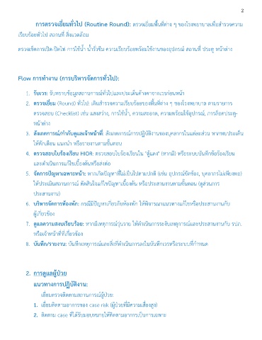 2. ตรวจเยี่ยม (Round) ทั่วไป: เดินส ำรวจควำมเรียบรอยของพื้นที่ต่ำง ๆ ของโรงพยำบำล ตำมรำยกำร