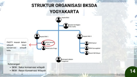 STRUKTUR ORGANISASI BKSDA YOGYAKARTA PASTY masuk dalam wilayah resor konservasi wilayah kota Keterangan : SKW : Seksi konservasi wilayah 14 RKW : Resor Konservasi Wilayah