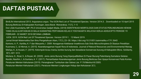 Dwi Liliek Kusindarta, MP, Ph.D Universitas Gadjah Mada, (2018) IDENTIFIKASI MORFOLOGIS DAN STATUS PERLINDUNGAN HEWAN