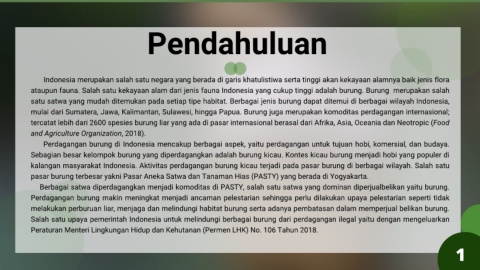ataupun fauna. Salah satu kekayaan alam dari jenis fauna Indonesia yang cukup tinggi adalah burung. Burung merupakan salah