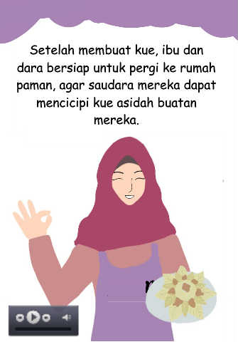 Setelah membuat kue, ibu dan dara bersiap untuk pergi ke rumah paman, agar saudara mereka dapat mencicipi kue asidah buatan mereka.
