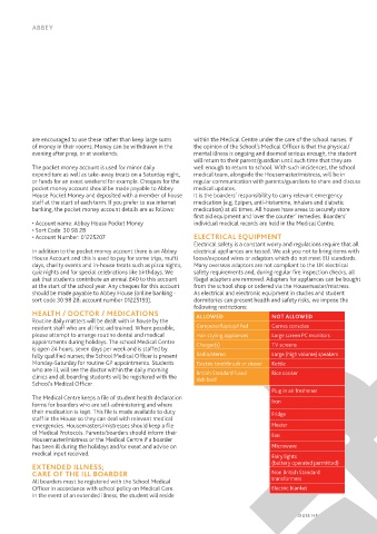 In addition to the pocket money account there is an Abbey electrical appliances are tested. We ask you not to bring items with