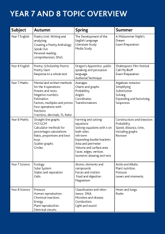 YEAR 7 AND 8 TOPIC OVERVIEW