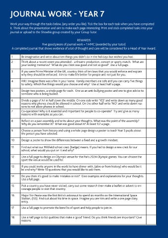 A completed journal that shows evidence of a lot of thought and care will be considered for a Head of Year Award.