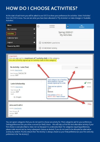 At the start of each term you will be asked to use SOCS to show your preferences for activities. Select ‘Activities’