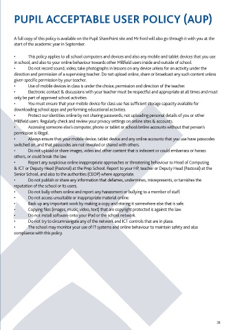 in school, and also to your online behaviour towards other Millfield users inside and outside of school.