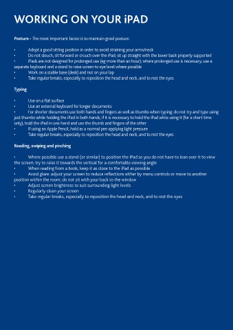 • Where possible use a stand (or similar) to position the iPad so you do not have to lean over it to view