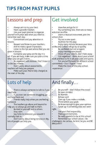 • Be organised with revision. Don’t leave it • Put yourself forward for different school