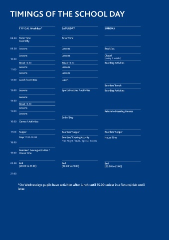*On Wednesdays pupils have activities after lunch until 15.00 unless in a fixture/club until