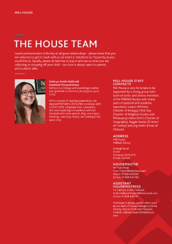 Kathryn Smith-Halliwell MILL HOUSE STAFF