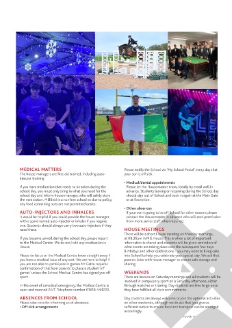 you have a medical issue of any sort. We are here to help! If parents liaise with house manager to ensure safe storage and