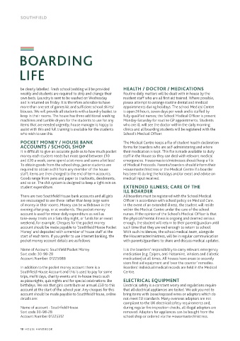 There are two Southfield House bank accounts and all girls All boarders must be registered with the School Medical