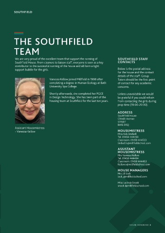Southfield House. From cleaners to liaison staff, everyone is seen as a key CONTACTS