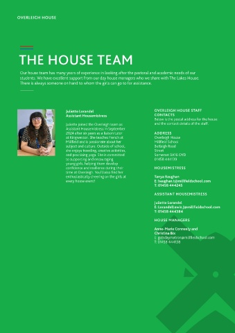 OVERLEIGH HOUSE Our house team has many years of experience in looking after the pastoral and academic needs of our
