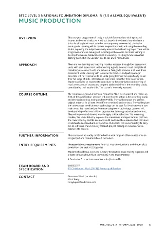 ENTRY REQUIREMENTS The essential entry requirements for BTEC Music Production is a minimum of 22