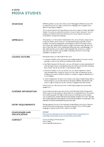 FURTHER INFORMATION All external examinations are taken at the end of the Upper Sixth and assess the