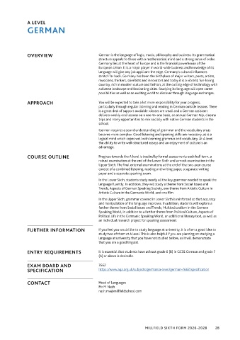 ENTRY REQUIREMENTS It is essential that students have at least grade 6 (B) in GCSE German and grade 7