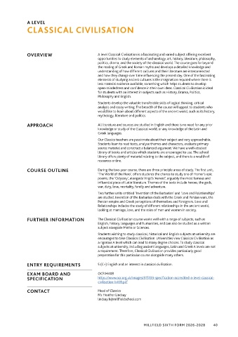 OVERVIEW A level Classical Civilisation is a fascinating and varied subject offering excellent