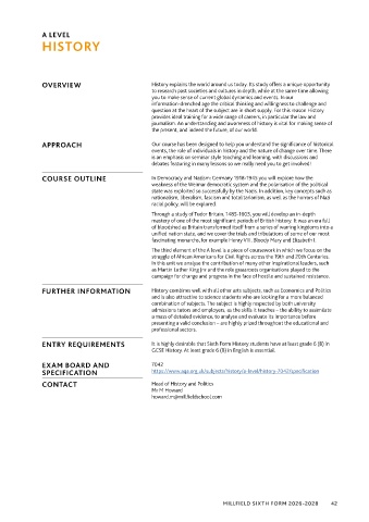 ENTRY REQUIREMENTS It is highly desirable that Sixth Form History students have at least grade 6 (B) in