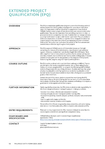 COURSE OUTLINE The EPQ can be combined with most Sixth Form pathways at Millfield. There is