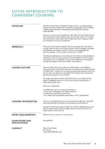 OVERVIEW The Leith’s Introduction to Confident Cooking Certificate, is a culinary program
