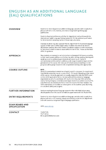 Overseas students may also approach the EAL department for functional language