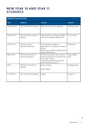 14:00 onwards Year 10 and Year 11 boarders Welcome in house and unpacking Boarding houses