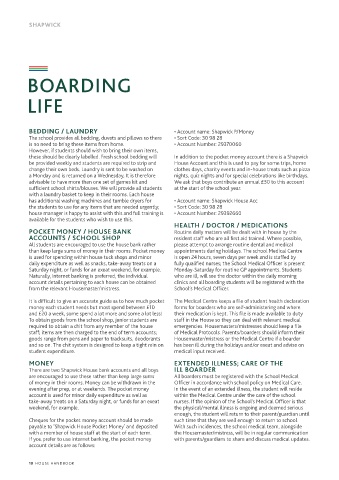 these should be clearly labelled. Fresh school bedding will In addition to the pocket money account there is a Shapwick