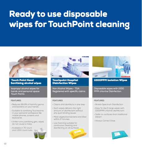 Ready to use disposable wipes for TouchPoint cleaning
