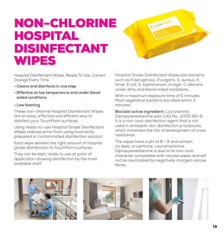 Each wipe delivers the right amount of hospital grade disinfectant to TouchPoint surfaces.