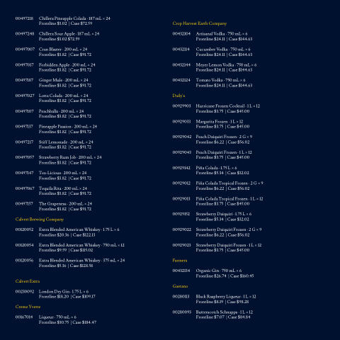 Frontline $3 75 | Case $45 00 Piña Colada · 1 75 L × 6 Frontline $5 34