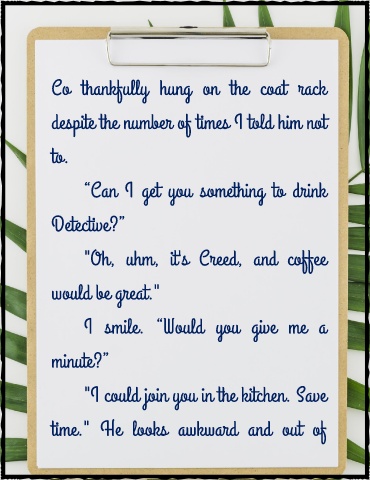 "Oh, uhm, it's Creed, and coffee