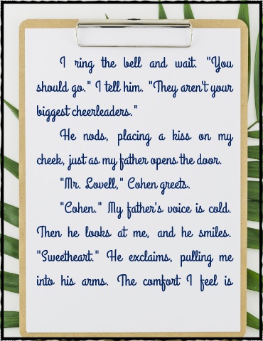 "Cohen." My father's voice is cold.