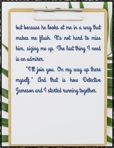 but because he looks at me in a way that makes me flush. It's not hard to miss him, sizing me up. The last thing I need is an admirer. "I'll join you. On my way up there myself." And that is how Detective Jameson and I started running together.