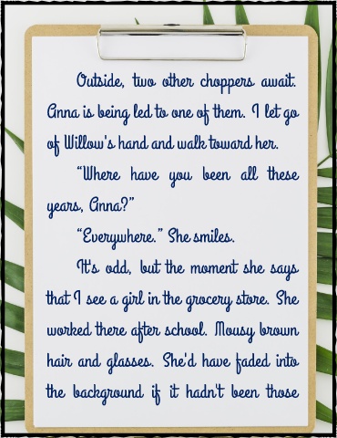 of Willow's hand and walk toward her.