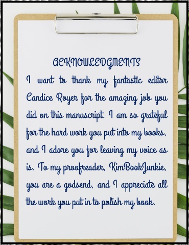 is. To my proofreader, KimBookJunkie,