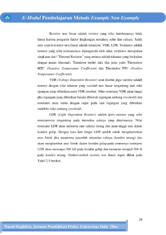 satu contoh resistor non linear adalah termistor, VDR, LDR. Termistor adalah