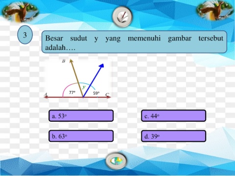 3 Besar sudut y yang memenuhi gambar tersebut adalah…. 77ᵒ 59ᵒ c. 44ᵒ d. 39ᵒ a. 53ᵒ b. 63ᵒ