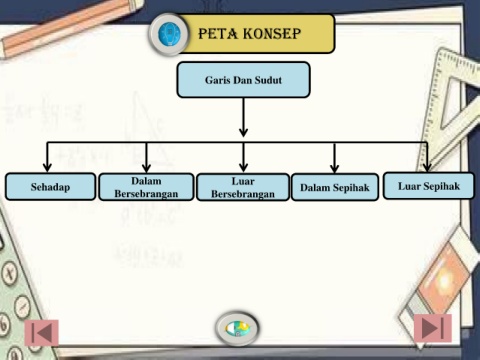 Peta konsep Garis Dan Sudut Sehadap Dalam Luar Dalam Sepihak Luar Sepihak Bersebrangan Bersebrangan