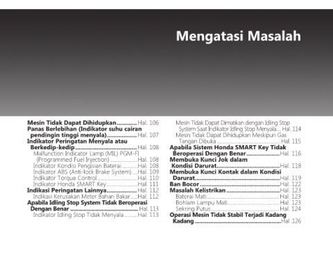 Mesin Tidak Dapat Dihidupkan............ Hal. 106 Mesin Tidak Dapat Dimatikan dengan Idling Stop