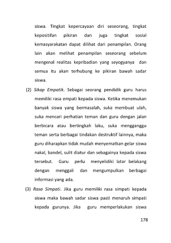 memiliki rasa empati kepada siswa. Ketika menemukan