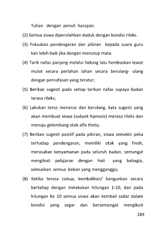 (5) Berikan sugesti pada setiap tarikan nafas supaya badan